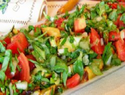 Beyaz peynir ezilerek, içine yoğurt, reyhan, ufacık yemeklik doğranmış kuru soğan, ufak küp doğranmış salatalık eklenip iyice Bayanştırılır. (İstenirse dere otu da konulabilir.) Kapakları çıkartılıp içi oyulmuş domateslerin içine doldurulur. Kırmızı biber ile sepet şekli verilip servise sunulur.