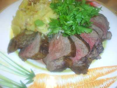 Fırın tepsisine soğanları halka şeklinde doğrayın ve en alta dizin. Bir tavada biftekleri altını üstünü kızartın. Üstüne tane olarak karabiber ilave edin. defne yaprağı, biberiye ve tuz koyup bir ikidöndürüp soğanın üstüne serin. 180 derecelik fırında 45 dakika pişirin. İçi sulu kalacak şekilde pişirin dilimleyerek servis yapın.