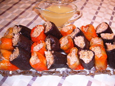4 1 kaşık salçayı, 1 bardak su ile Bayanştırın. Yavaş yavaş dolmaların üzerine ilave edin. En üste 1 dilim domates, 1 dilim biber koyup, kızgın fırında 5 dakika daha pişirin ve servis yapın.
